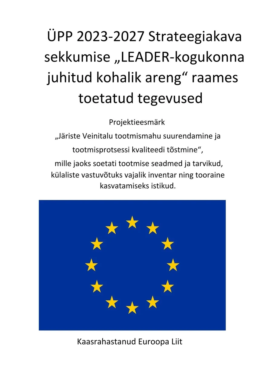Aastal 2024 toetas LEADER programm Järiste Veinitalu tootmismahu suurendamist ja toodete kvaliteedi tõstmist läbi uute seadmete soetamise.